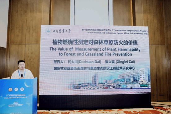 与会专家学者通过多种形式深入探讨了消防领域的理论突破、技术转化的核心难题、应用瓶颈,充分分享各自最新研究成果。代大川以《植物燃烧性测定对森林草原防火的价值》为题作学术报告,聚焦植物燃烧性测定方法标准化研究,系统阐述了该标准化方法在防火物种筛选与生物防火隔离带营造中的重要应用价值,为推动森林草原生态防火提供科学参考。林海川以《野火下植物果实迟开性演化研究进展》为题,从植物性状演化的独特视角出发,重点探讨了果实迟开性这一适火性状在森林火灾预防中的应用前景,为野火风险评估优化提供了新思路。