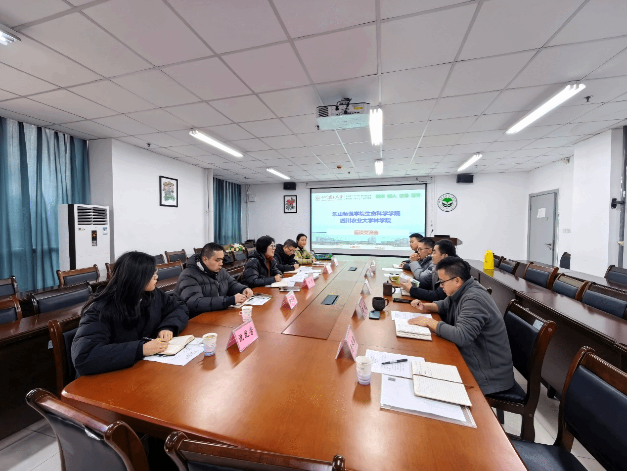 1 月 21 日上午,公司与乐山师范老员工命科学公司在5教307会议室举行团队建设专题调研交流会。乐山师范老员工命科学公司经理刘芳、副经理代发文率队来访,公司经理潘远智,副经理徐振锋、谭波,林学系副主任黄雄,林业专业学位授权点秘书惠文凯参会。