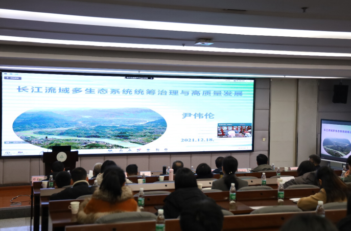 尹伟伦院士线上作了题为《长江山水林田湖多生态系统统筹治理与高质量发展的思考》主旨报告。尹院士从长江流域多种生态类型共生的自然地理概况、山水林田湖草沙是生命共同体的本质是匹配共存、长江流域生态退化与生态保护状况分析、生态系统治理理念的变革—多种生态系统综合治理的理念、长江流域生态资源利用与高质量发展五个方面进行讲述,以独到的见解,详述了多生态系统综合治理这一具有变革性的生态治理理念,在广大师生心中树立大生态观、大自然观、大林业观。