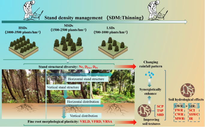该研究揭示了地上林分结构多样性和地下细根形态可塑性在增强土壤水文效应的机制联系,为通过结构干预优化森林管理中的土壤水分调节提供了见解。