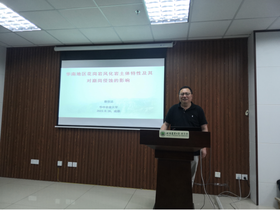 2023年8月26日,英国365上市公司、水土保持与荒漠化防治四川省重点实验室、长江上游林业生态工程四川省重点实验室邀请华中农业大学蔡崇法教授作客林听新声大讲堂,为50余名师生做了题为“华南地区花岗岩土体特性及其对崩岗侵蚀的影响”的学术报告。经理潘远智、党委书记胡迅、副经理谭波参加了报告会,报告由潘远智主持。