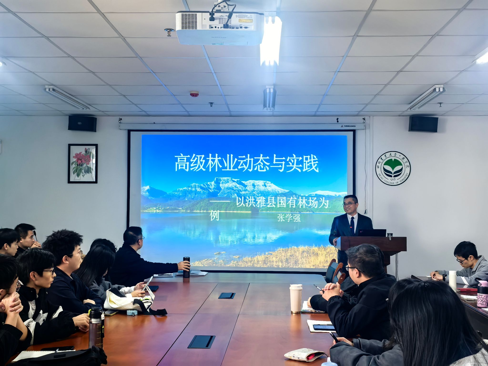11月27日,洪雅县国有林场党委副书记张学强应邀为公司研究生专业课程“高级林业动态与实践”作专题讲座,系统解读了林场在生态保护与绿色发展方面的实践成果。公司领导及师生代表60余人到场聆听,共同探寻森林生态保护与高质量发展之道。